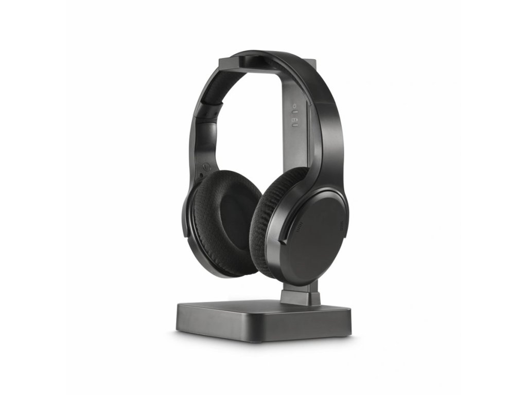 - bezdrátová sluchátka přes uši (over-ear) pro nerušený domácí poslech bez kabelů - dvě možnosti spojení: 1. digitální přenos 2,4 GHz z nabíjecí/vysílací základny bez rušivého šumu, bez zpoždění signálu a bez nutnosti párování 2. Bluetooth připojení pro univerzální použití s TV, telefony, tablety atd. - nabíjecí/vysílací základna slouží také jako stojánek pro odložení sluchátek - analogové (jack) i digitální (optické) kabelové připojení základny ke zdroji zvuku (např. TV) - nastavitelný, polstrovaný hlavový oblouk a náušníky - ovládání hlasitosti a ekvalizéru na sluchátkách - ekvalizér se třemi režimy: normal (vyvážený), voice (zvýraznění řeči), full (zvýraznění basů a výšek) - integrovaný mikrofon, možnost použití jako headset pro telefonování - integrovaný akumulátor pro až 16 hodin poslechu - automatické vypnutí po 3 minutách bez signálu - konektor jack na sluchátkách pro možnost připojení kabelem Technické parametry: - připojení sluchátek: 2,4 GHz RF, Bluetooth 5.3, jack 3,5 mm - připojení vysílače: ODT Toslink (digitální optické), jack 3,5 mm (analogové stereo) - bezdrátový dosah: 100 m (RF), 10 m (BT) - citlivost: 90 dB - impedance: 32 ohmů - napájení sluchátek: integrovaný akumulátor - napájecí konektor základny: USB-C - provozní doba: 16 h (při střední hlasitosti) - doba nabíjení: 2,5 h - hmotnost: 450 g - barva: černá Obsah balení: - sluchátka - nabíjecí základna s vysílačem - síťový napájecí adaptér s USB-C vidlicí - audio kabel jack 3,5 mm (1,2 m) - návod k použitíDoplňkové parametry